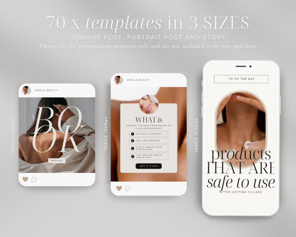 Perfect for nurses, nurse injectors, estheticians, skin clinics, aesthetics nurses, wellness providers,beauty service providers, cbut can be used also by coaches, small business owners, bloggers, online personalities, social media managers, virtual assistants and designers who want to grow their following by engaging posts and owning a aesthetically pleasing instagram feed. Simple designs - simple to edit!