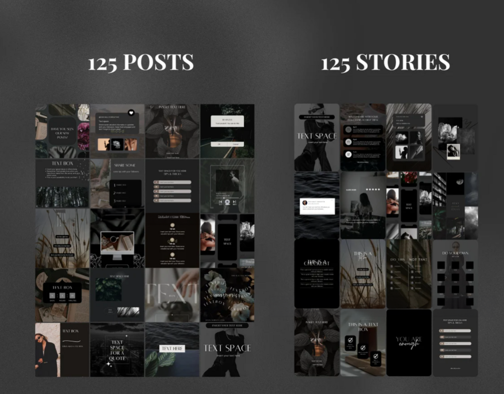 šŸ‘‰ This Black Instagram post & story templates set contains 250 Social Media Templates - 125 IG post templates & 125 IG story templates. All of the templates can be fully customized using Canva! Perfect for a luxury aesthetic vibešŸ˜